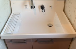 施工前 施工後 ・床木目を横方向から縦方向にすることにより、洗面…
